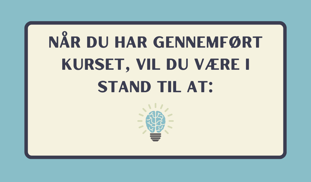- Når du har gennemført kurset, vil du have en dybere forståelse af, hvordan hjernen fungerer, og hvordan den påvirker din adfærd og dine beslutninger i hverdagen.